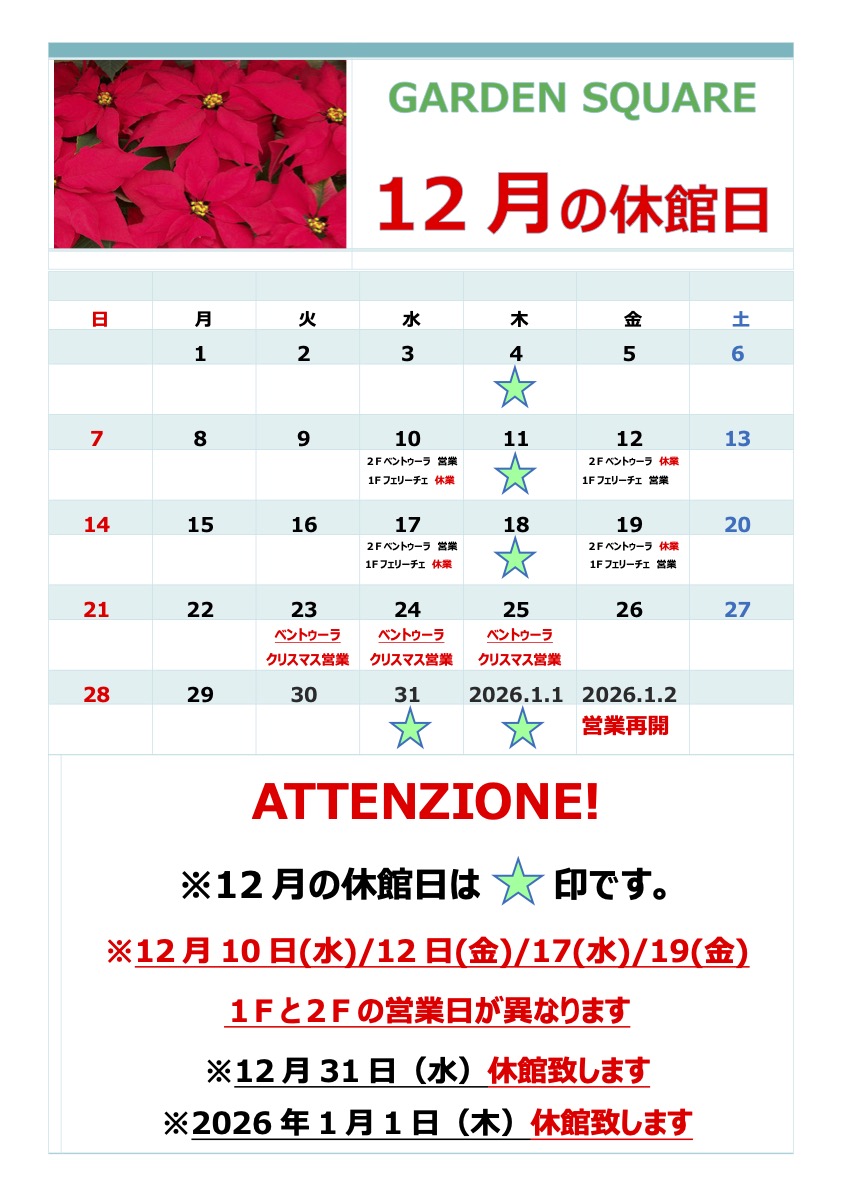 いつも、ガーデンスクウェアをご愛顧いただき、誠にありがとうございます。