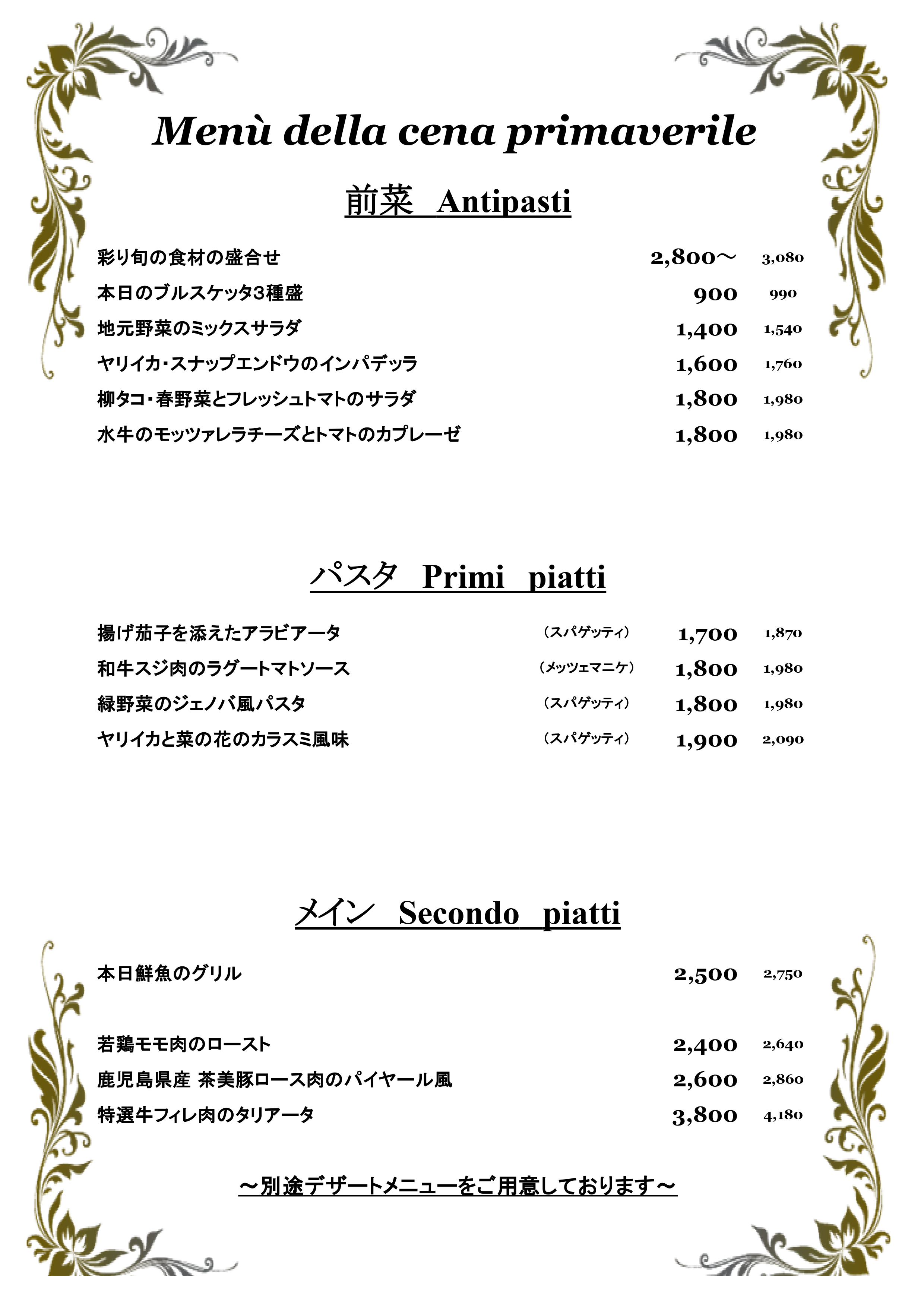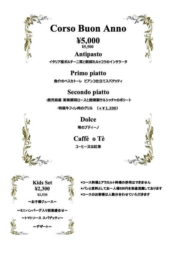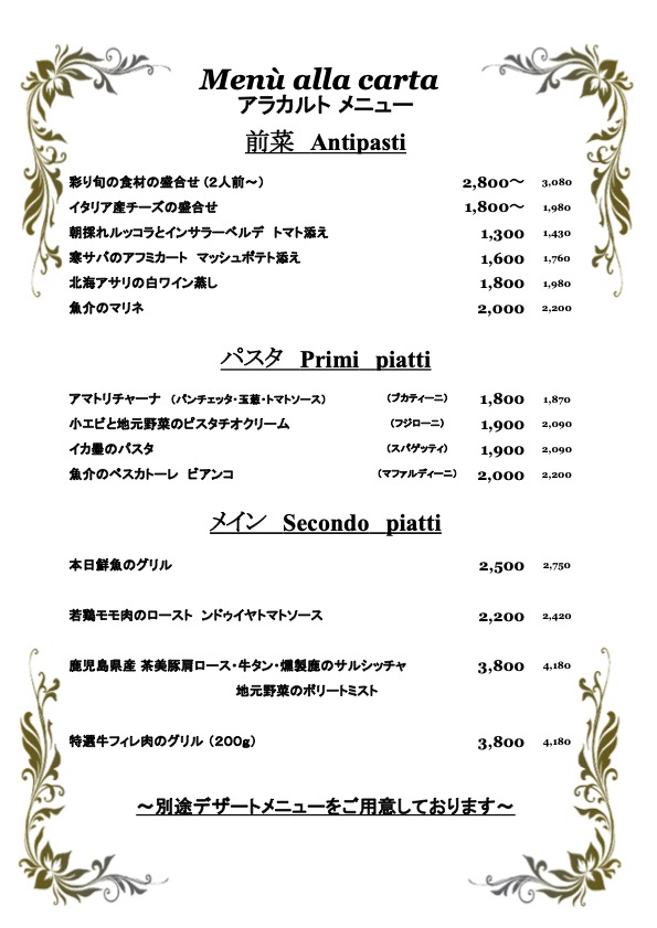 ※コースとアラカルトの併用ご注文はご遠慮下さい